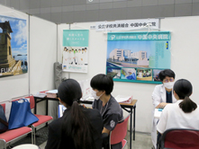 多くの医学生の方々に広島県ブースを訪問していただき、参加した県内臨床研修病院の指導医、研修医の先生方は熱心に病院や研修内容等について説明されていました。